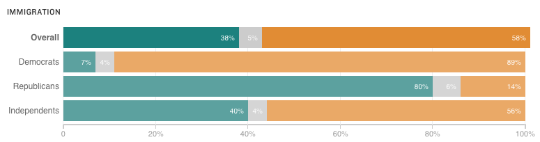 Again, the conventional wisdom is that Trump's handling of immigration has been a public relations and legal failure. He has said outrageous things, the courts have blocked him, and Congress has done nothing other than shut itself down in deadlock. Disaster, right? Not to Republican voters. 80% approval.