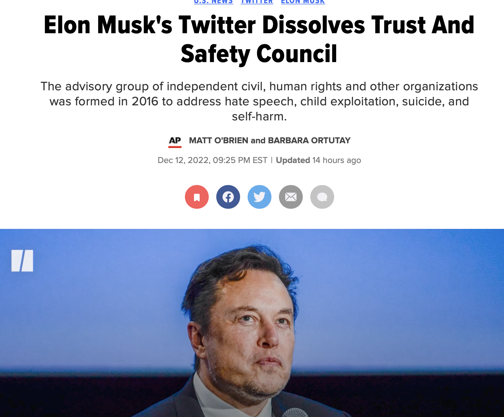 Antisemitic posts soared 61% in the two weeks after Musk acquired Twitter. Hate speech is not only prejudiced but abusive or threatening and can lead to violence. Peter does a pretty good job of censoring that, except for providing the occasional example. Nor is there anything wrong with censorship per se. Only the government isn’t allowed to censor non-government communication, and even that has exceptions. If remaining “Anonymous” or “Unknown” hadn’t enabled the ignorant to become so intemperate, they might do a better job of censoring themselves.